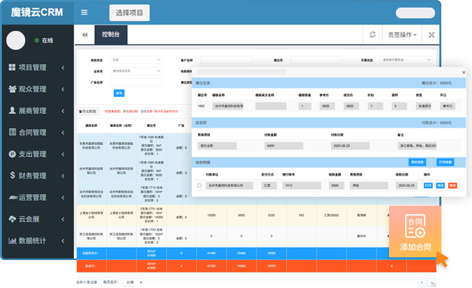 展会管理系统中的财务管理模块是展会运营的重要支持部分,它主要围绕展会的收款、业绩提成、发票等财务环节进行管理和控制,旨在确保展会财务活动的高效、准确与合规。