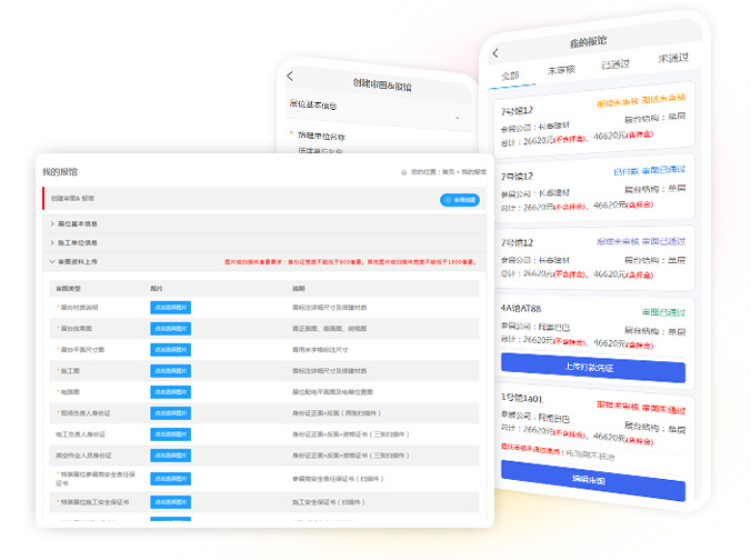 支持参展商或搭建商在线提交展馆搭建方案、图纸等资料,系统可自定义报馆填写项,如单行文本、多行文本、图片、附件等,还支持一项一审的审核机制,提高审核效率和准确性。